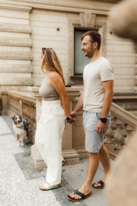 Poznali jsme se v létě 2014 na táboře, kam jsme jeli oba jako vedoucí. Láska na první pohled to nebyla (i když kdo ví…), každopádně cesta k sobě vedla přes pár zatáček, klikatých cestiček a několik let přátelství, popichování a postupného sbližování.